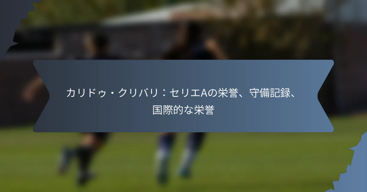 カリドゥ・クリバリは、セリエAで強力な存在感を確立し、守備スキルとナポリの成果における重要な役割で称賛を受けています。彼のタックル、インターセプト、クリアランスに関する印象的な統計は、リーグのエリートディフェンダーの一人としての地位を際立たせています。さらに、クリバリのセネガル代表チームへの貢献は、国際的な栄誉をもたらし、彼のグローバルな評価をさらに強固なものにしています。 カリドゥ・クリバリのセリエAでの受賞歴は何ですか? カリドゥ・クリバリは、守備力とナポリの成功への貢献により、セリエAで重要な認識を得ています。彼の受賞歴は、リーグのトップディフェンダーの一人としての地位を反映し、個人の業績とチームの成果の両方を示しています。 受賞した個人賞の概要 クリバリのセリエAでの個人賞は、彼の卓越した守備スキルを強調しています。彼はセリエAベストディフェンダーに何度も選ばれ、フィールドでの一貫したパフォーマンスを強調しています。 セリエAベストディフェンダー:複数回受賞 セリエA月間最優秀選手:優れた月間パフォーマンスで認識 これらの賞は、彼の個々の才能を祝うだけでなく、試合に影響を与え、チーム全体のパフォーマンスに貢献する能力をも示しています。 在籍中のチームの成果 クリバリがナポリに在籍していた期間、チームはセリエAで顕著な成功を収めました。彼の守備能力は、いくつかの重要な勝利を確保し、強力なリーグ順位を維持する上で重要でした。 コッパ・イタリア:優勝 スーペルコッパ・イタリアーナ:優勝 セリエAでの安定したトップ4フィニッシュ これらのチームの成果は、ナポリのイタリアサッカーにおける競争力のある優位性におけるクリバリの不可欠な役割を反映しています。 セリエA年間ベストチームでの認識 クリバリのパフォーマンスは、セリエA年間ベストチームに何度も選ばれることにつながりました。この認識は、彼の影響力と、ヨーロッパで最も厳しいリーグの一つでの守備者としての一貫性を証明しています。 年間ベストチームに選ばれることは、彼がセリエAのエリート選手の一人として見なされていることを示し、リーグの他のトップディフェンダーとしばしば比較されます。 セリエAでのクラブの成功への影響 クリバリのナポリの守備における存在は、セリエAでのクラブの成功にとって重要でした。彼のゲームを読む能力とフィジカルは、チームが堅実な守備記録を維持するのに役立ちました。 彼の貢献は、失点を減らすだけでなく、チームが後方から構築することを可能にし、全体的な攻撃プレーを向上させました。 セリエAの他のディフェンダーとの比較 セリエAの他のトップディフェンダーと比較すると、クリバリは力強さ、スピード、戦術的な意識の組み合わせで際立っています。彼はミランのフィカヨ・トモリやインテルのミラン・スクリニアルと並べて言及されることが多いです。 彼のユニークなスキルセットは、1対1の状況や空中戦での優れたパフォーマンスを可能にし、リーグのどのストライカーにとっても手強い相手となっています。 カリドゥ・クリバリの守備記録は何ですか? カリドゥ・クリバリは、セリエAでの卓越した守備記録で認識されており、タックル、インターセプト、クリアランス、ブロックに関する印象的な統計を通じてそのスキルを示しています。彼の貢献は、リーグでトップディフェンダーの一人にするものであり、重要な試合で常に高いレベルでパフォーマンスを発揮しています。 重要な守備統計(タックル、インターセプト) クリバリは、試合ごとに約2〜3回のタックルを平均しており、相手の攻撃を効果的に妨害する能力を示しています。彼のインターセプト率も同様に印象的で、試合ごとに高い数字に達することが多く、フィールドでの予測力とポジショニングスキルを示しています。 タックルやインターセプトに加えて、クリバリの守備意識は、ゲームをよく読み、パスをインターセプトし、潜在的な脅威を現れる前に遮断することを可能にします。この積極的なアプローチは、彼のチームの守備の安定性に大きく貢献しています。 クリアランスとブロックの指標 キャリアを通じて、クリバリは常に高いクリアランス数を達成し、試合ごとに約4〜6回のクリアランスを平均しています。この統計は、守備ゾーンから危険を効果的に排除する能力を強調しています。…