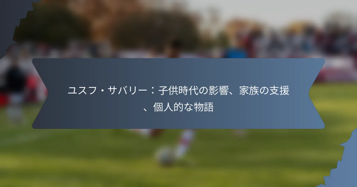 ユスフ・サバリーがプロアスリートになるまでの旅は、彼の幼少期の経験と家族の揺るぎない支援に深く根ざしています。彼の文化的遺産と培われたレジリエンスに影響を受け、彼は決意を持って困難に立ち向かいました。家族の犠牲と励ましは、彼の道を形作り、彼の願望を燃やす上で重要な役割を果たしました。 Key sections in the article: Toggle ユスフ・サバリーに影響を与えた幼少期の要素は何ですか? サバリーの幼少期の重要な経験 文化的背景とその発展への影響 育成過程で直面した課題 幼少期に影響を与えた人物 幼少期の経験から学んだ教訓 家族の支援はユスフ・サバリーのキャリアにどのような影響を与えましたか? アスリートとしての旅における両親の役割 兄弟や親戚からの支援 家族からの感情的および動機付けの支援 彼のキャリアのための家族の犠牲 彼の労働倫理に対する家族の価値観の影響 ユスフ・サバリーの個人的な物語は何ですか? 幼少期の影響を現在の地位に結びつける 彼のキャラクターを定義する個人的な逸話 プロアスリートとしての旅の振り返り 彼の動機と願望に関する洞察 若手アスリートへの人生の教訓 ユスフ・サバリーの物語における広範なテーマは何ですか? 成功を達成するための忍耐の役割 文化的アイデンティティが彼のキャリアに与える影響 スポーツにおけるコミュニティ支援の重要性 ユスフ・サバリーに影響を与えた幼少期の要素は何ですか?…