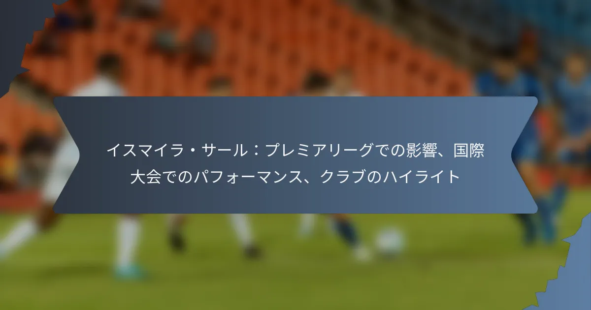 イスマイラ・サールはクラブサッカーにおいて、特にプレミアリーグとリーグ・アンで重要な影響を与えています。彼のキャリアは、印象的なパフォーマンス、重要な移籍、記憶に残る瞬間によって特徴付けられ、ファンのお気に入りとしての地位を確立しています。